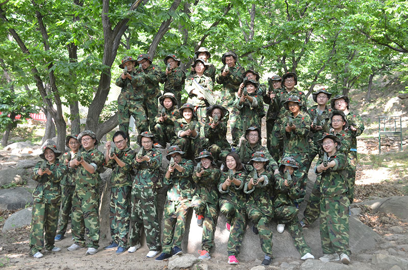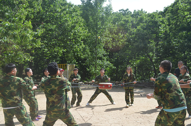此次拓展主要是以提高員工的綜合素質(zhì)、團(tuán)隊意識,促進(jìn)員工的成長為目的。為了使拓展收到切實(shí)效果,讓每個參加活動的員工都能在活動中充分體驗(yàn)和感受活動內(nèi)容凸顯出來的團(tuán)隊精神,在活動開始時,教練將員工分成了2個隊,每個隊在隊長、隊秘的帶領(lǐng)下確定了自己的隊名、口號、隊歌、隊旗等。在拓展過程中2個隊按照項(xiàng)目要求,堅持不拋棄不放棄的團(tuán)隊精神,互幫互助,將每個人的智慧、力量融入到團(tuán)隊中,在大家的共同努力下出色的完成了信任背摔、空中斷橋、真人CS、茫茫人海、勝利墻等一項(xiàng)項(xiàng)艱巨而富有挑戰(zhàn)性的項(xiàng)目。